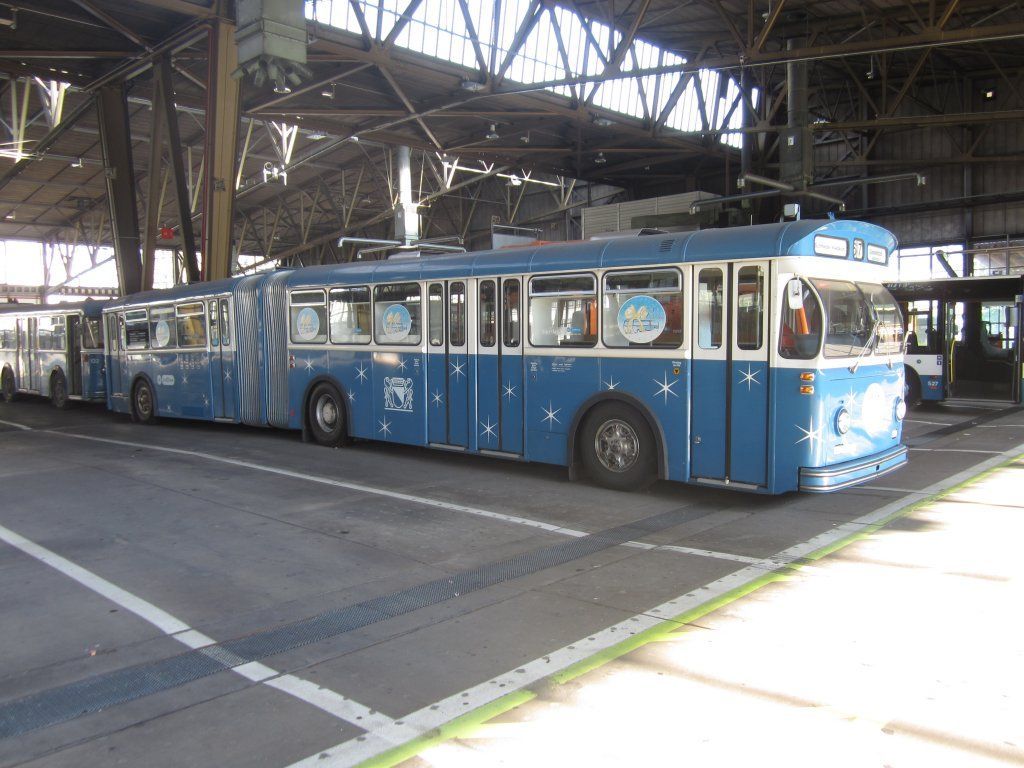 Seit Januar 2017 gehört auch dieser Gelenkbus dem Verein Tram Museum Zürich. Der Wagen wurde bei der VBZ zwischen 2002 und 2014 während der Weihnachtszeit als Päcklibus an der Zürcher Bahnhofstrasse eingesetzt. Er wurde von uns in den ersten sechs Monaten zurückgebaut, die Carrosserie aufpoliert und technisch instand gestellt. Auch hier wird eine MFK-Prüfung als Veteranenfahrzeug angestrebt.